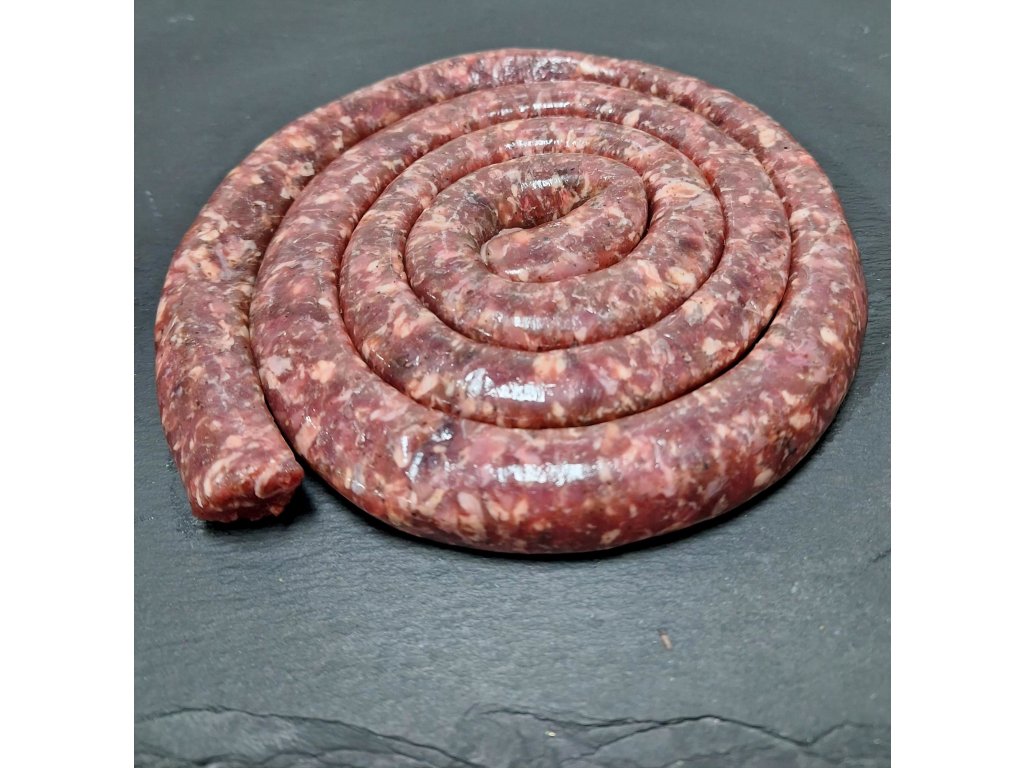 Kančí klobásky s vepřovým masem a ginem, kombinují divokou chuť kančího masa s aromatickými tóny jalovcového ginu.